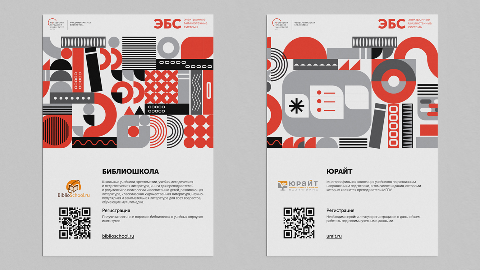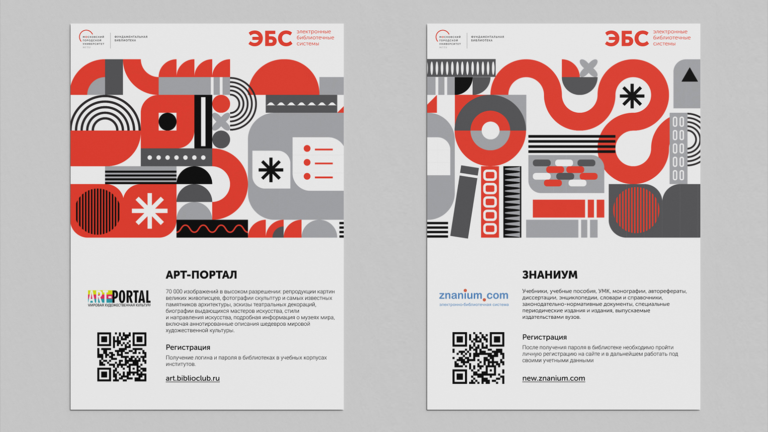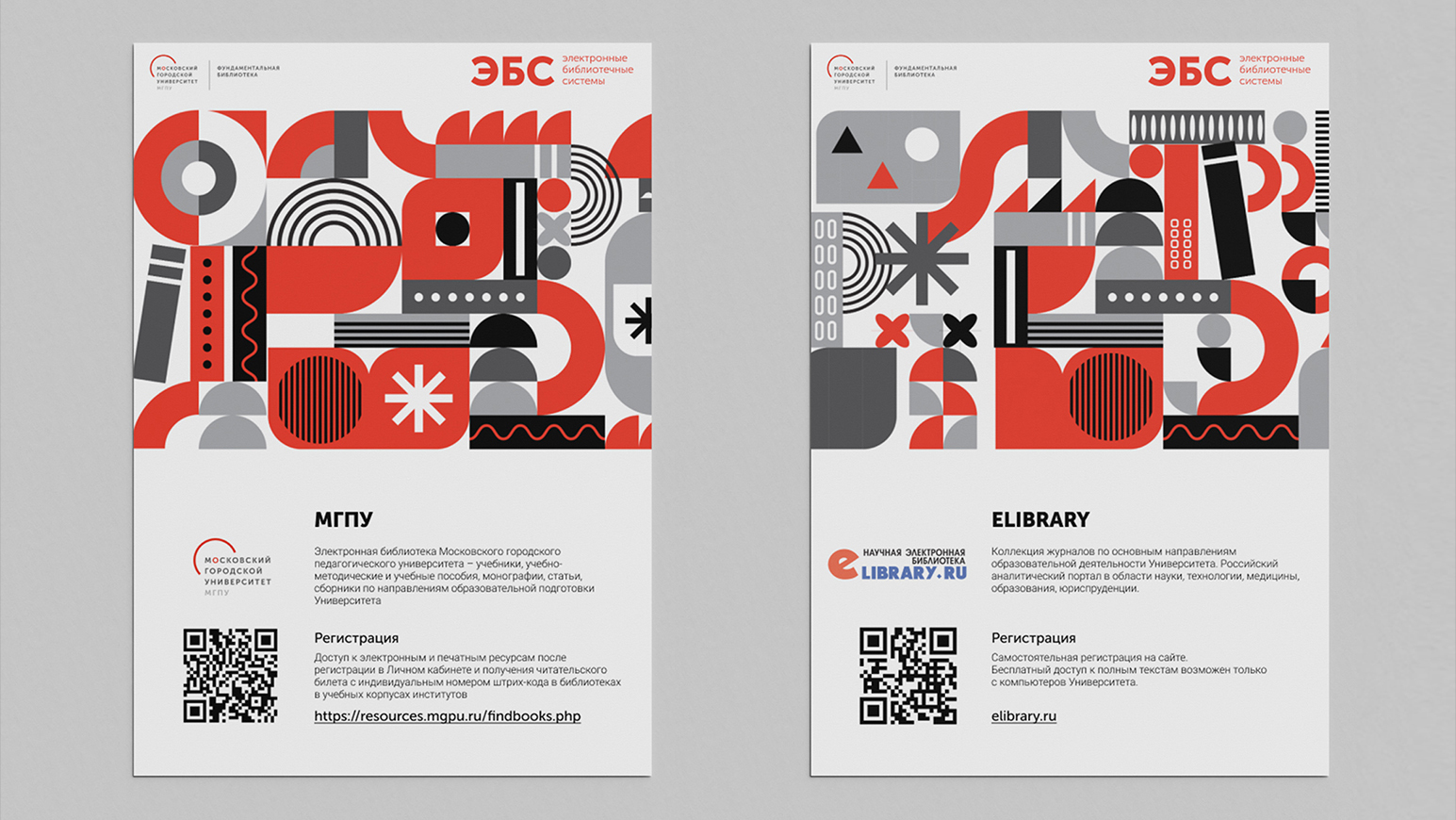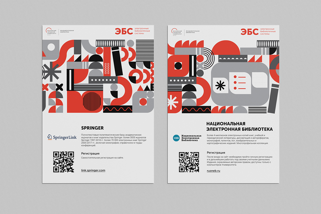 Фундаментальная библиотека МГПУ предоставляет своим читателям доступ к различным цифровым библиотекам. Все они входят в единую электронную библиотечную систему (ЭБC). Это онлайн-сервисы с литературой в виде оцифрованных книг, журналов и т.п. Каждый такой сервис имеет свое научное направление, адрес, правила регистрации и пользования литературой. Для этого в медиазале Фундаментальной библиотеки нужно разместить информационные листы с куар-кодами и описанием ресурсов. ЭБС много, их количество непостоянно, регулярно заключаются договора с новыми ресурсами. Нужно было сделать так, чтобы информация о пользовании ЭБС стала навигацией, а не "одним из непонятных листочков на стене".